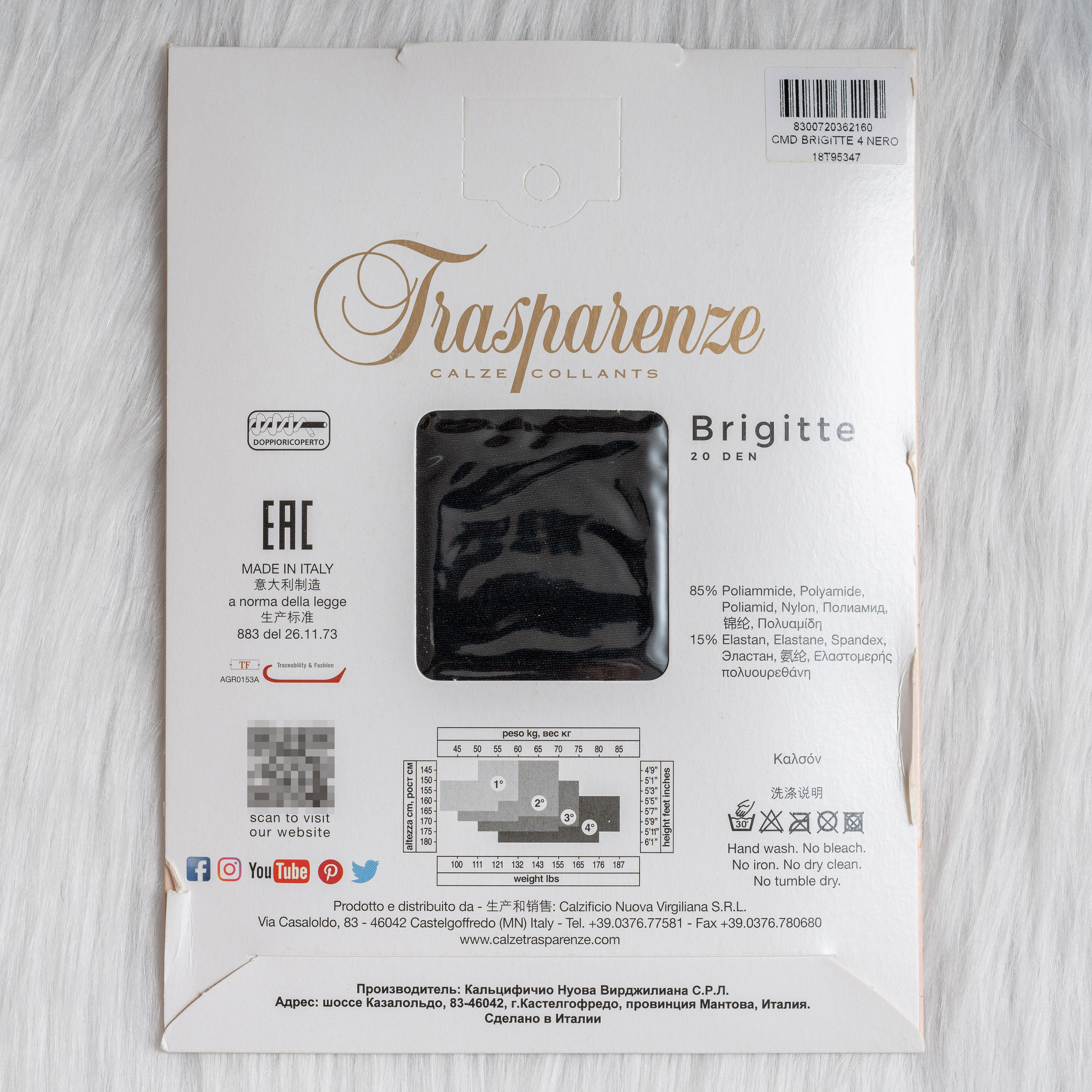 Italian Trasparenze Brigitte 20D first-line crotch satin gloss smooth pantyhose