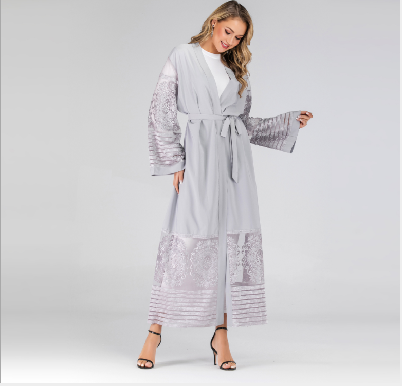 Fashion Women's Embroided Mesh Cardigan Dubai Robe Dress