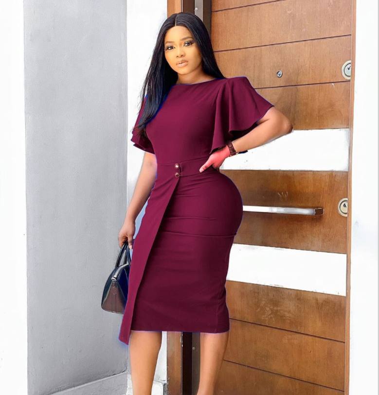 African Lotus Sleeved Fork Fit Bandage Dress African Lotus Sleeve Slim Dress