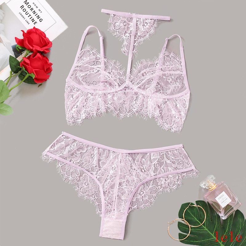 Sexy lace bra set halter neck lingerie sleepwear underwear