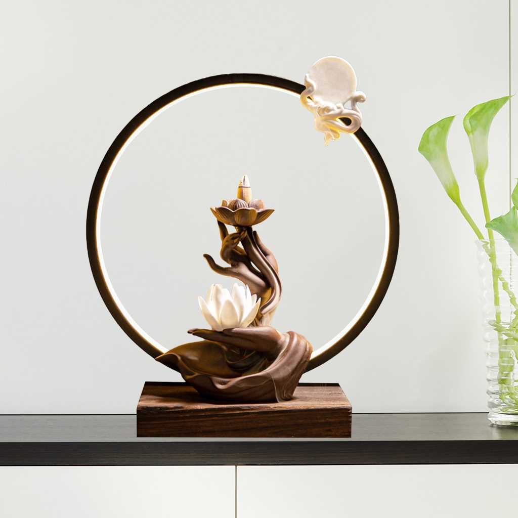 Ceramic Backflow Waterfall Incense Burner LED Light WhiteZoom