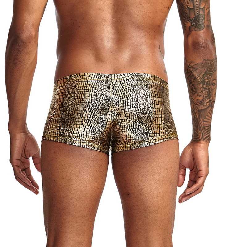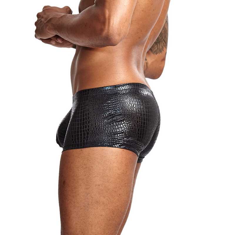 Mens Snake Skin Imitation Leather Underwear Boxers Crotchles