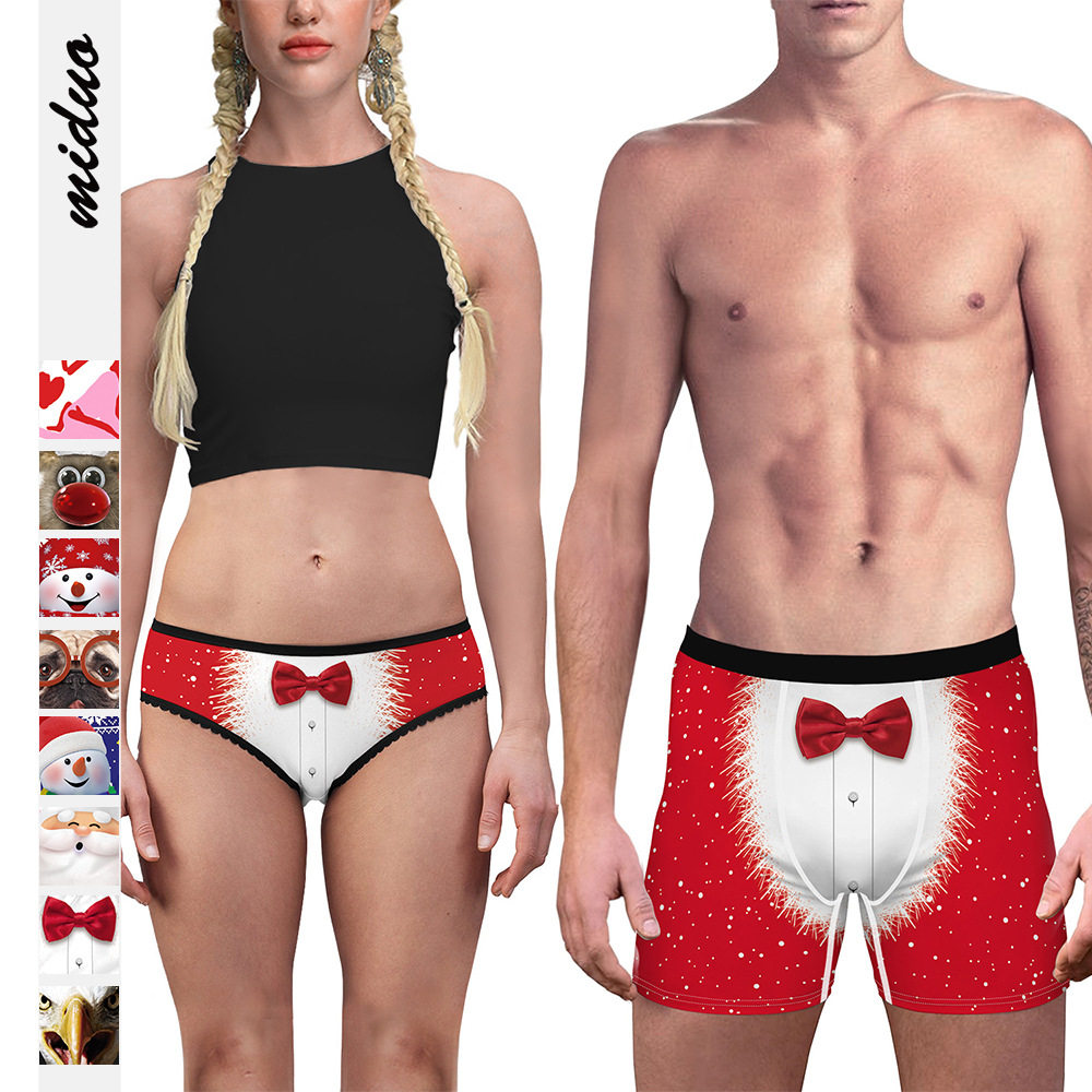 Christmas couple underwear men's boxers women's briefs