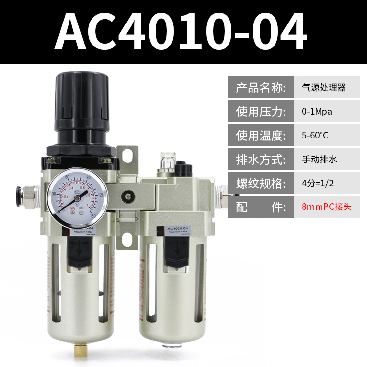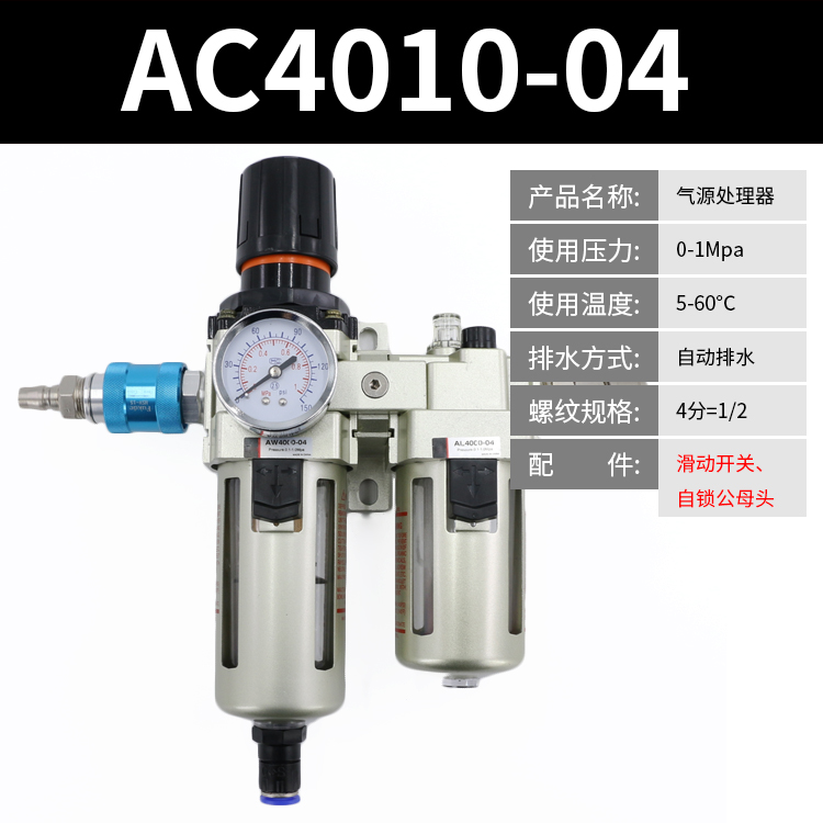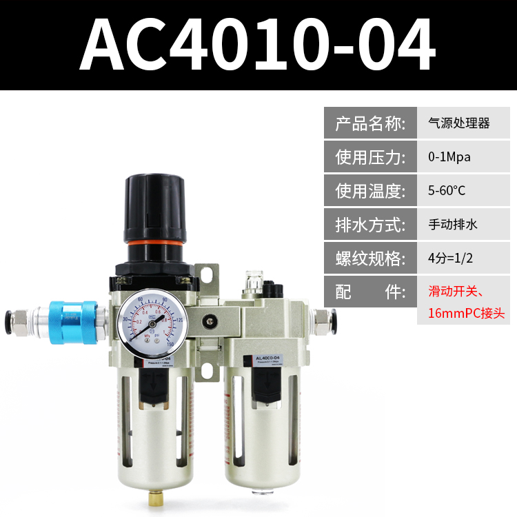 Pneumatic double coupling AW oil-water separator AC4010-04 air pump pressure regulating valve SMC type filter AL4000Pneumatic double coupling AW oil-water separator AC4010-04 air pump pressure regulating valve SMC type filter AL4000Provide Pneumatic double coupling AW oil-water separator AC4010-04 air pump pressure regulating valve SMC type filter AL4000 by 亚耐克气动五金亚耐克气动五金 at chinahao.com. Product #: 1650235794037.53亚耐克气动五金In stock