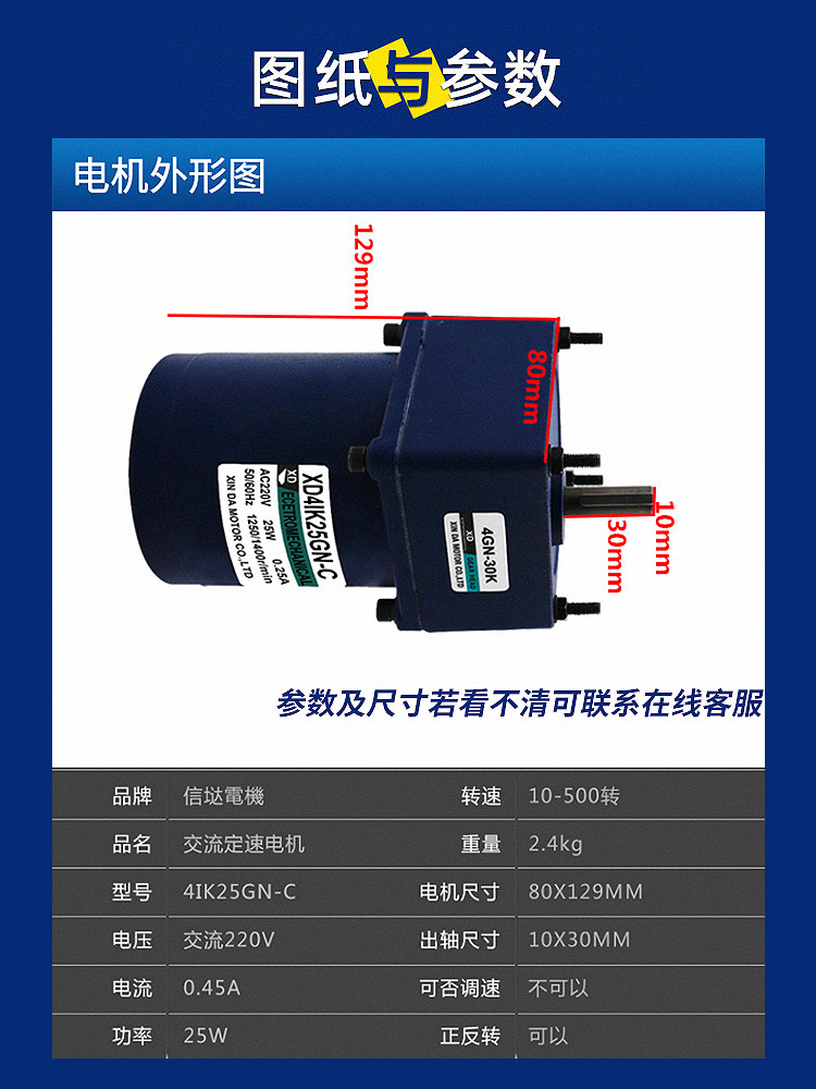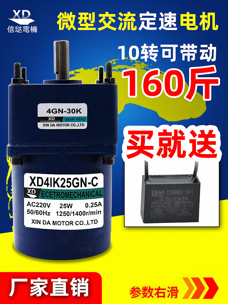 Cinda 220V Miniature AC Gear Reduction Motor Motor 25W Single Phase Forward Reverse Low Speed Constant Speed MotorCinda 220V Miniature AC Gear Reduction Motor Motor 25W Single Phase Forward Reverse Low Speed Constant Speed MotorProvide Cinda 220V Miniature AC Gear Reduction Motor Motor 25W Single Phase Forward Reverse Low Speed Constant Speed Motor by 信达电机信达电机 at chinahao.com. Product #: 1864600190765.80信达电机In stock