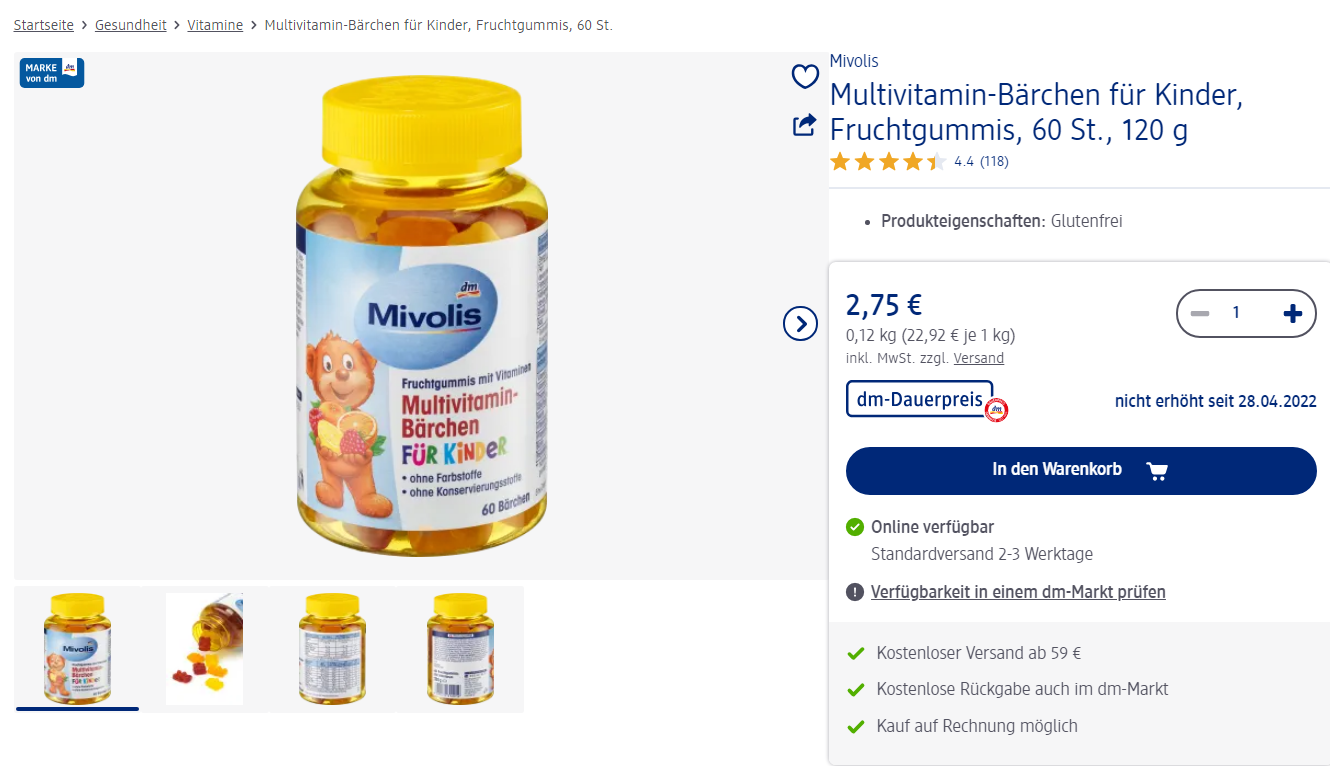 60 tablets of sugar fudge chewed by vec vitamin vitamin in dm Mivolis children in the German supermarketZoom