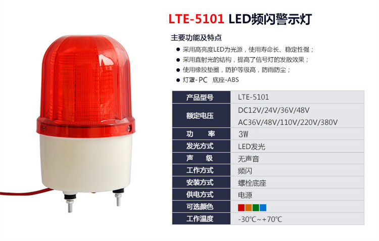 Frequency flash warning light LTE-5101 alarm flashing light LED alarm 24v220v12v warning flashFrequency flash warning light LTE-5101 alarm flashing light LED alarm 24v220v12v warning flashProvide Frequency flash warning light LTE-5101 alarm flashing light LED alarm 24v220v12v warning flash by 代登常 at chinahao.com. Product #: 1984821198215.71In stock