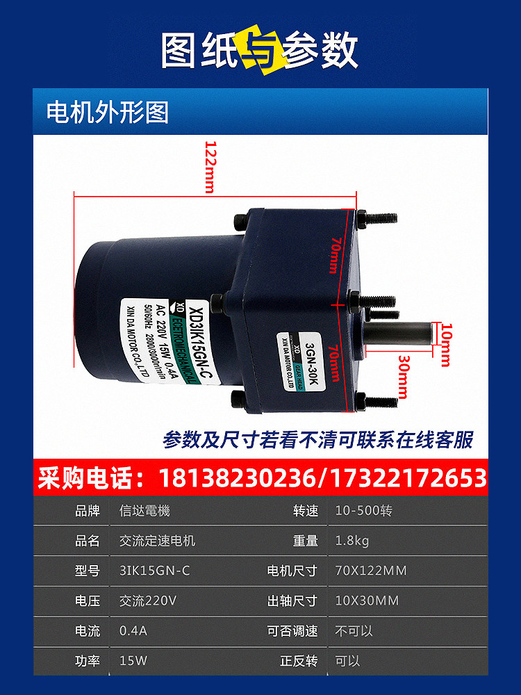 Cinda 15W Miniature AC Gear Reduction Motor 220V Single Phase Motor Forward and Reverse Constant Speed Small MotorCinda 15W Miniature AC Gear Reduction Motor 220V Single Phase Motor Forward and Reverse Constant Speed Small MotorProvide Cinda 15W Miniature AC Gear Reduction Motor 220V Single Phase Motor Forward and Reverse Constant Speed Small Motor by 信达电机信达电机 at chinahao.com. Product #: 2552296475257.26信达电机In stock