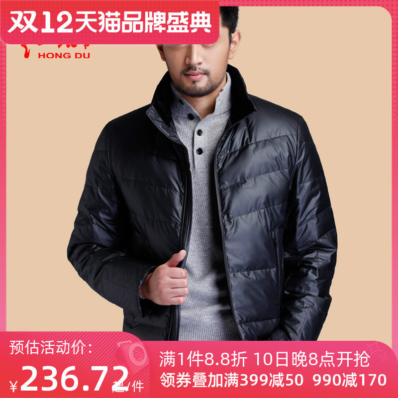 Red Capital winter new men's down jacket middle aged warm stand collar business casual down jacket men's coatZoom