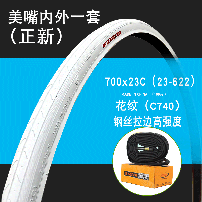 Color classificationThe new 700X23C tire is new 700X23 mm 48 mm inside and outside 1 set positive 700X23 French mouth 48 mm inside and outside 1 set positive 700X23 French Tsuit 60m