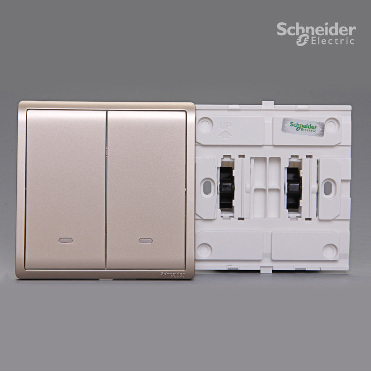 Schneider Fengshang series indulged in gold champagne gold double-controlled switch E8232L2F_WG double-connected panelZoom