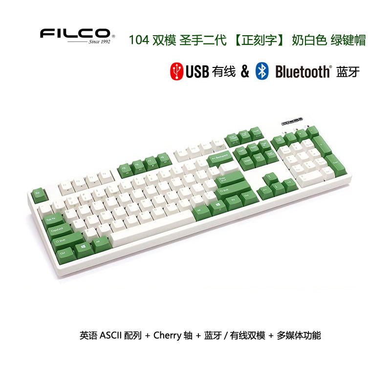 Fairco FILCO second-generation ninja 104 cherry axis mechanical keyboard double-mode bluetooth pink greenZoom