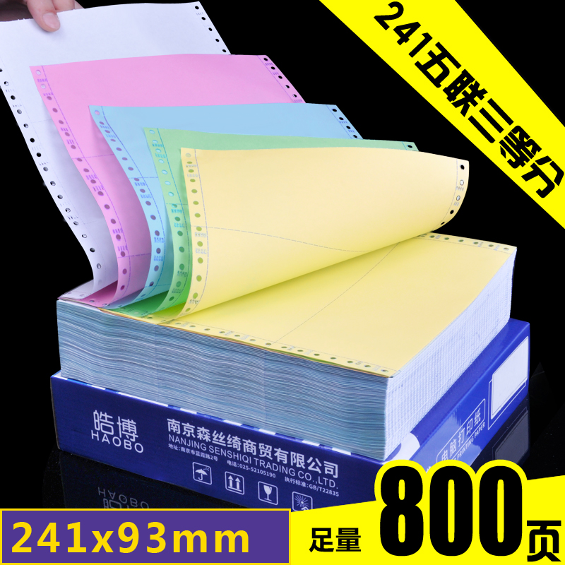 Haobo 241 needle computer printer paper 5 five-part equivalent first-class divided two-third-class distribution waybill single delivery single machine injection hole rewriting pressure sensed single shipment paper