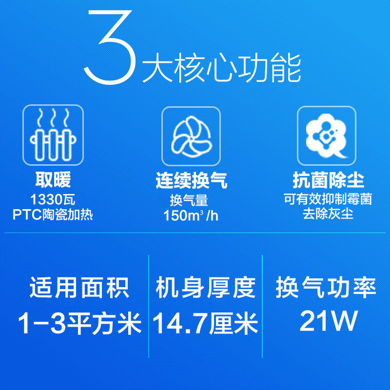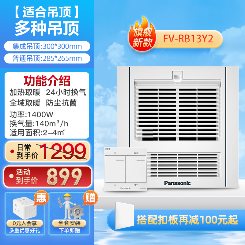 Panasonic Bathroom Warming Plaster Ceiling Three-in-one Ultra-thin Heating Embedded Bathroom Bathroom Heater