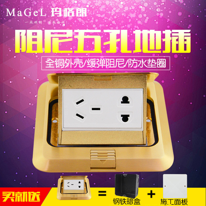 All-copper anti-water bomb starter boner 5 five-hole ground socket home office bottom boxZoom
