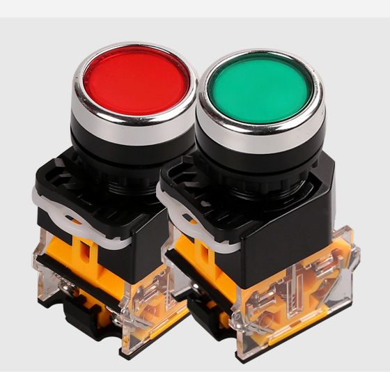 LA38-11DS with lamp self-lock button switch flat button red and green round control 22mm installation hole 220VZoom