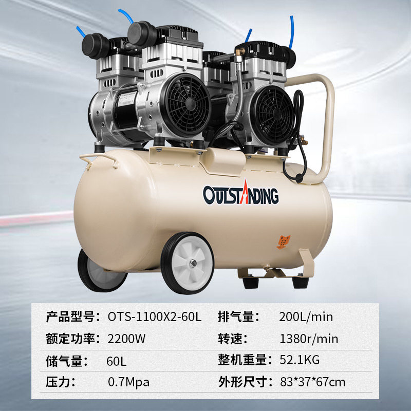 Ortus OTS-1500x2-60L3KW Air Compressor Oil-Free Silent Air Pump Air Compressor Spray PaintZoom