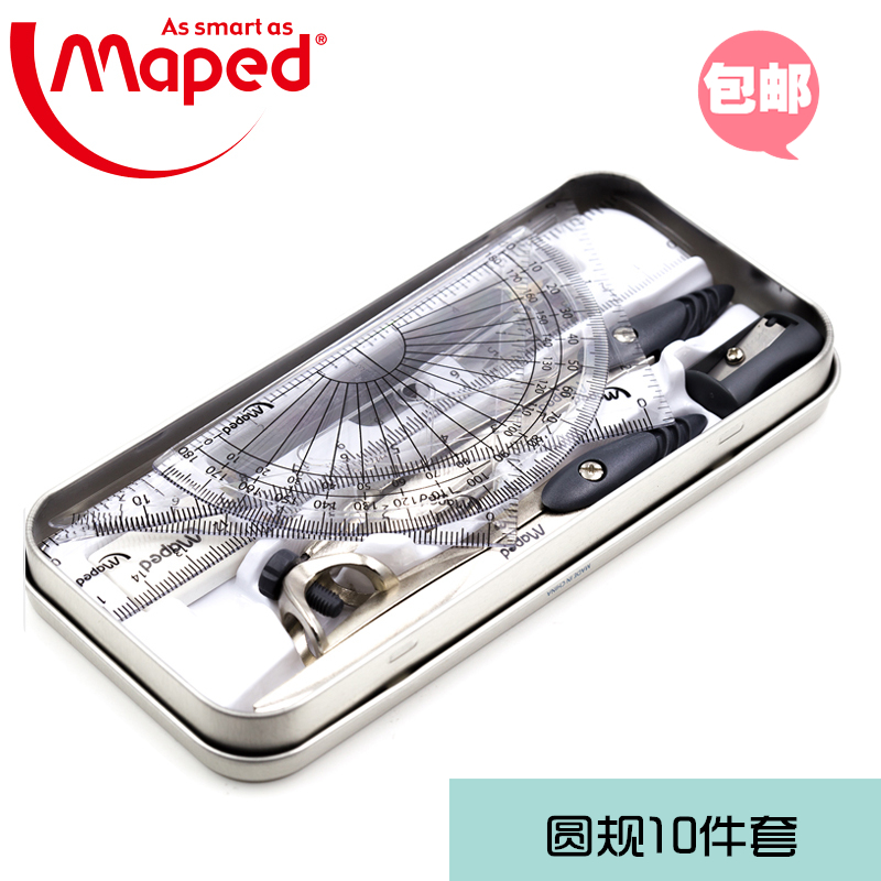 Topic 194109 triangle ruler round suit 10 pieces of metal box professional student drawing