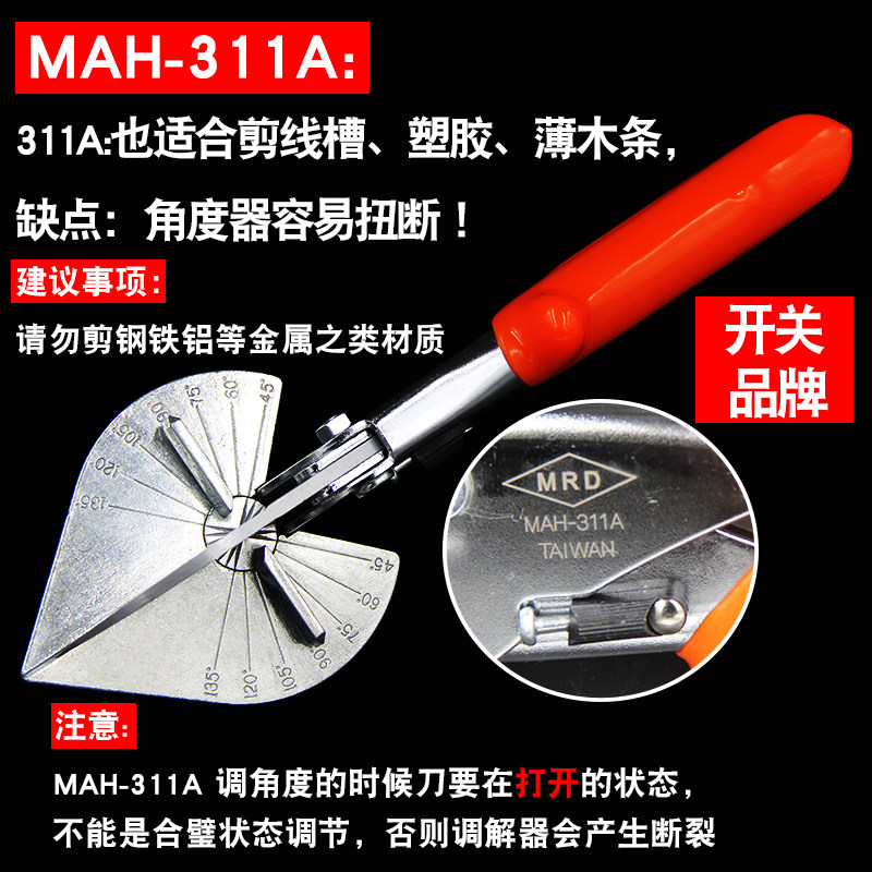 Taiwan 311A electrician cutting PVC wire chute adjustable angle cutting 45 degrees 90 degrees U-shaped edge cap strip scissors
