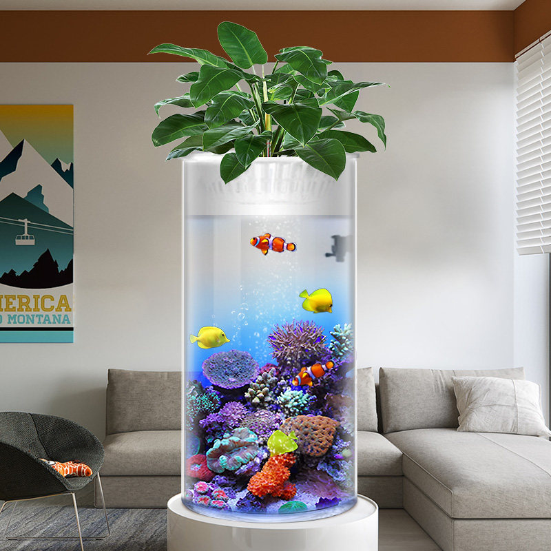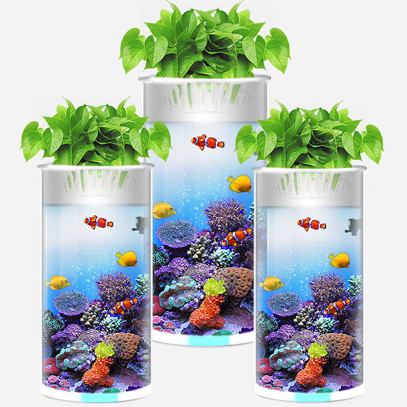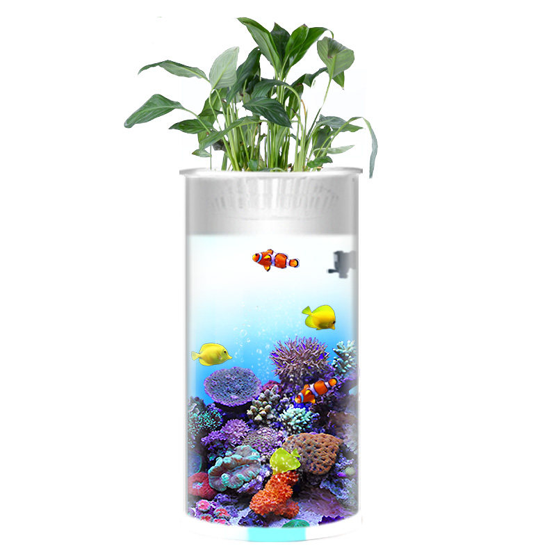 cylindrical small fish tank aquarium home small water free eco tank ultra white glass office desktop fish tankZoom