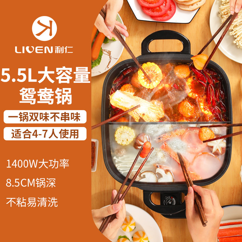 Liren electric hot pot household electric pot electric frying pan multi-function all-in-one electric pot electric frying pan electric frying pan electric hot pot