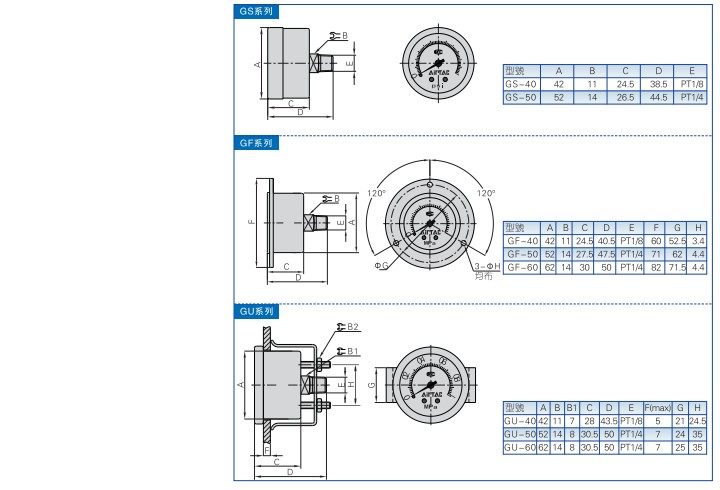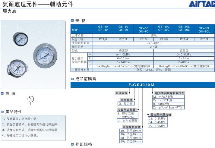 Color classificationGS40GS50GF40GF50GF60gu40GU50gu60PR built-in pressure gauge applicable G series