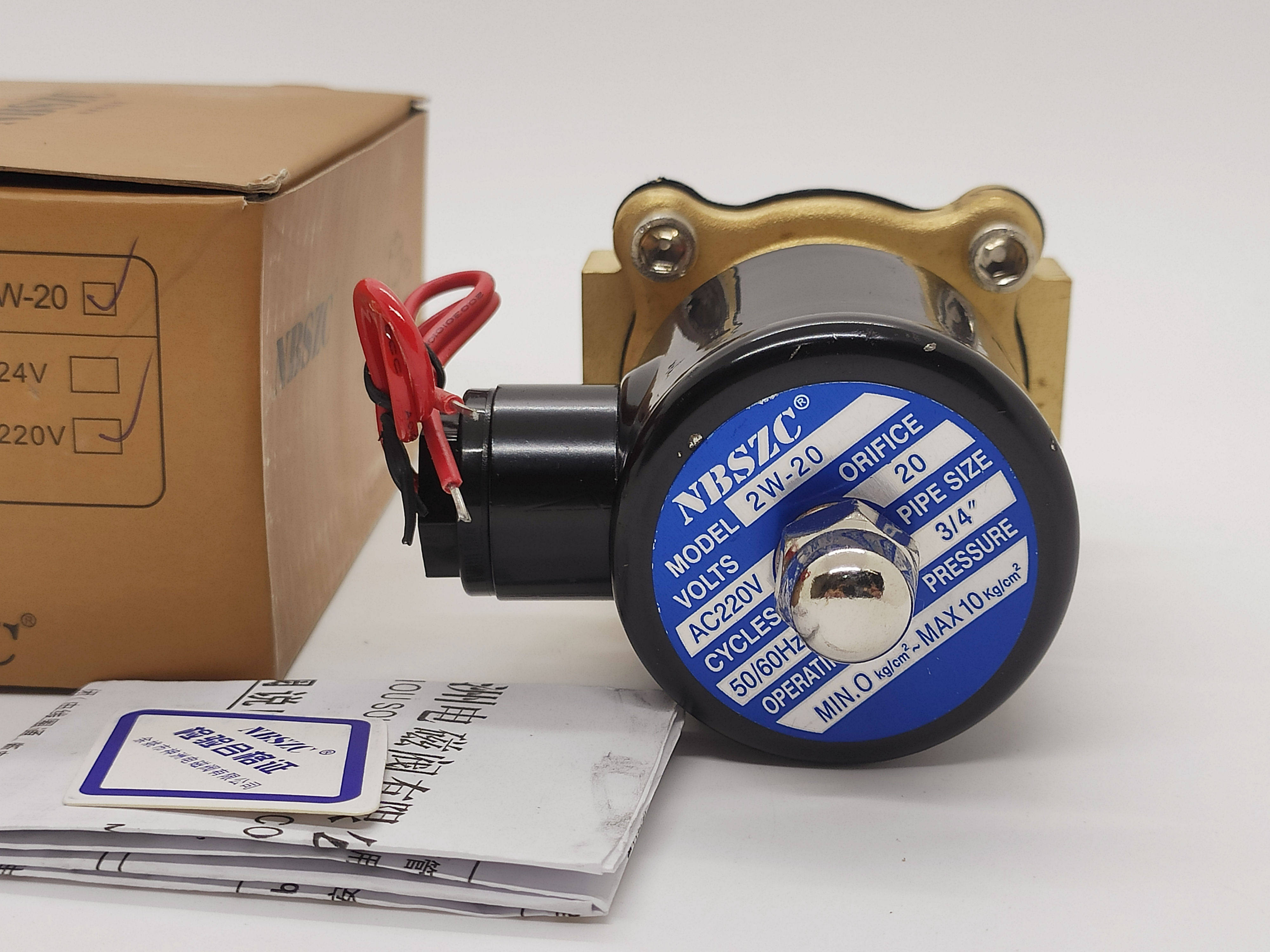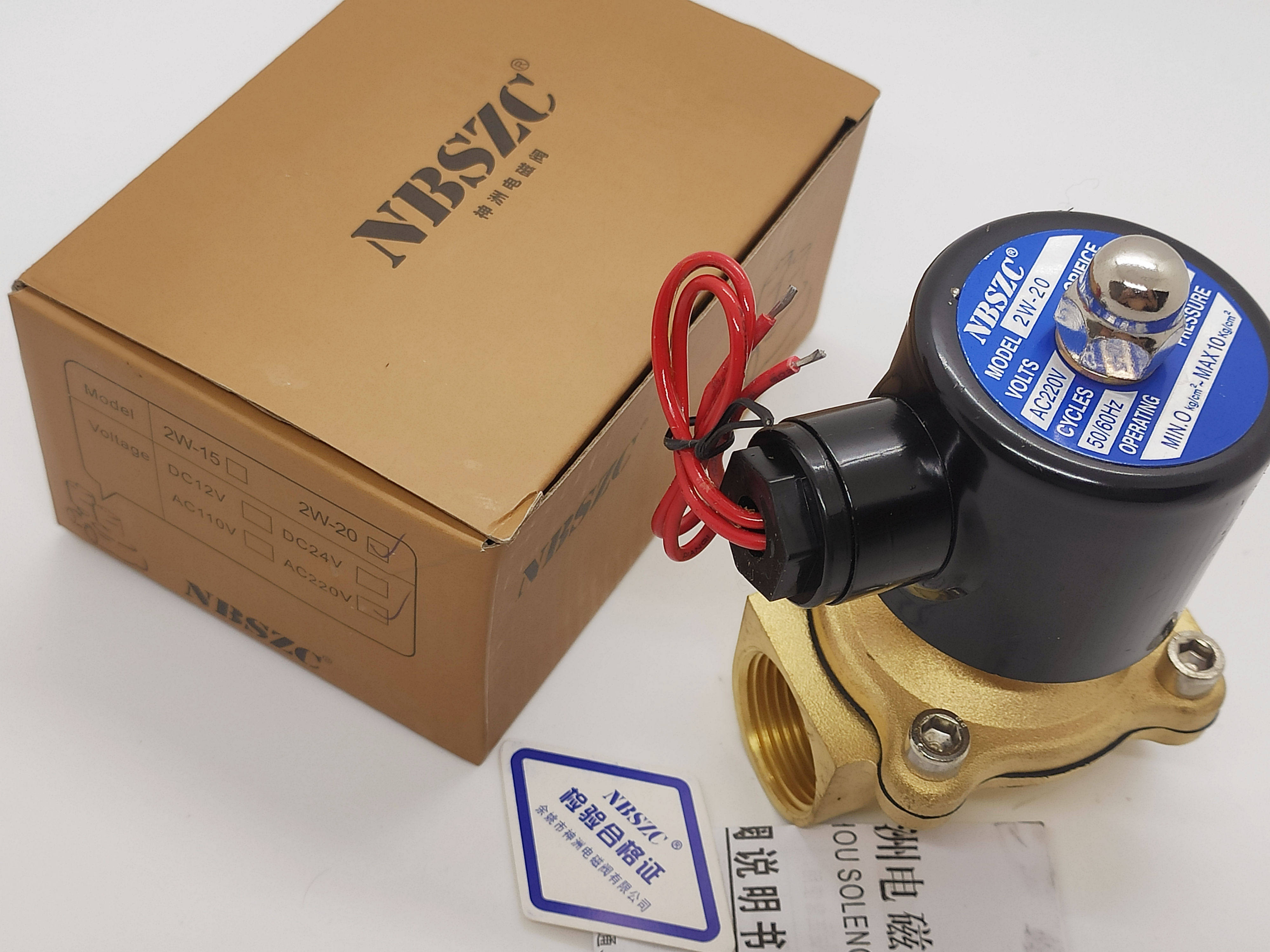 Genuine NBSZC Shenzhou solenoid valve 2W-20 normally closed 6 points solenoid valve gas valve 2W200-20 220V 24V