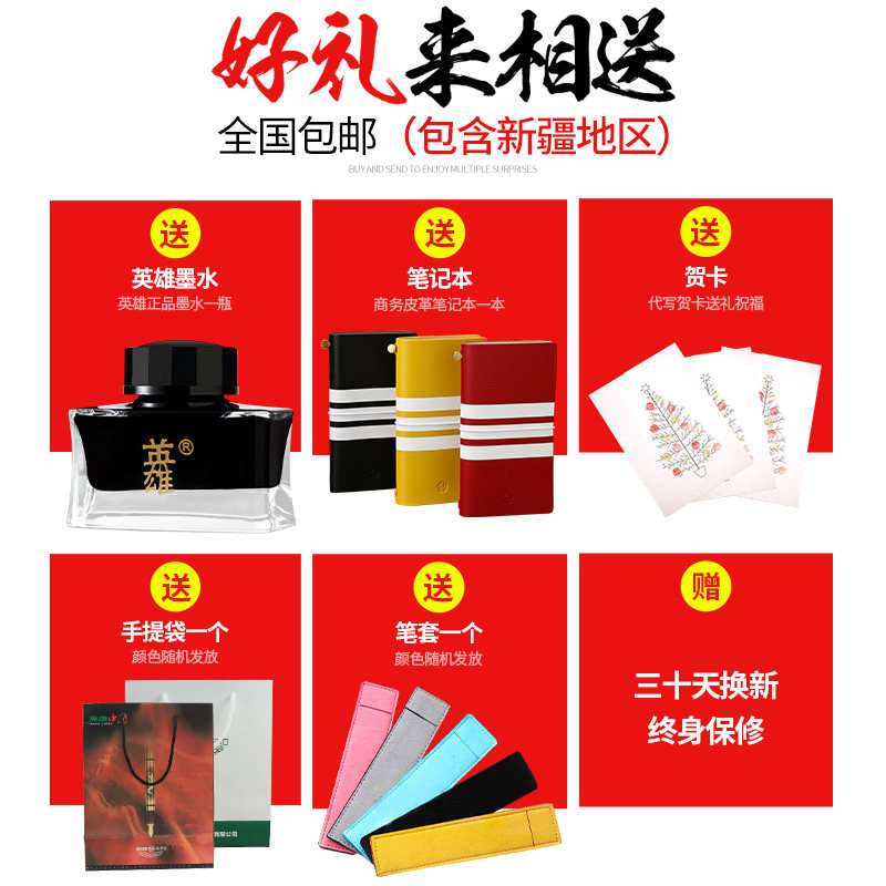 Heroic pen 14K gold pen 200B men's business practice old-fashioned ink students specialize in retro official flagship store high-end gift box set customized gift giving