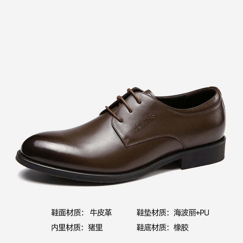 Okang Men's shoes Men's business formal wear with British leather shoes to mill the soft noodlesZoom