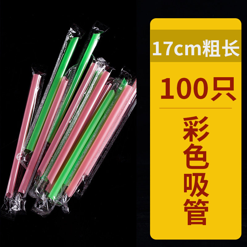 17cm independent packaging straw one-time transparent beverage juice bean paste plastic pearl milk tea color strawZoom