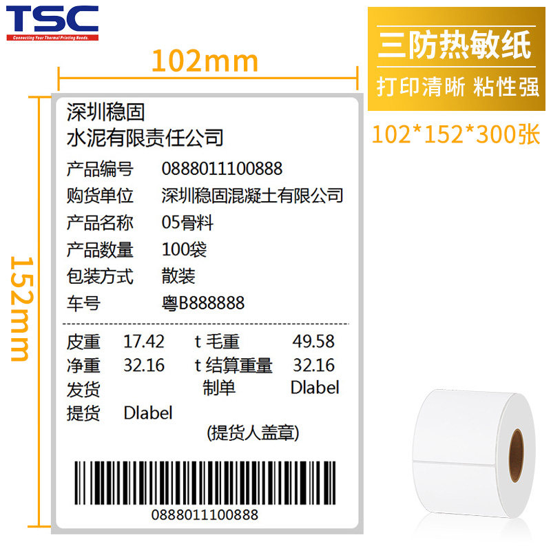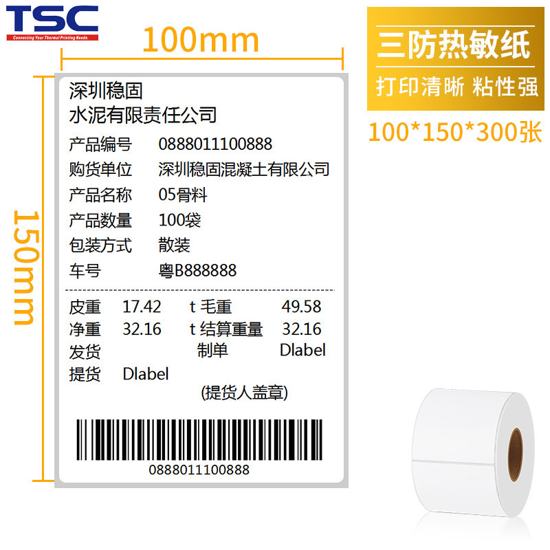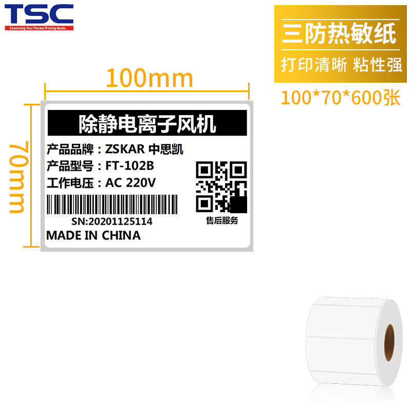 TSC three anti-thermal paper label paper 100x100 50 60 80 150 non-dry adhesive printing paper electronic flash E postal bar code printer label paper blank sticker flow expressZoom
