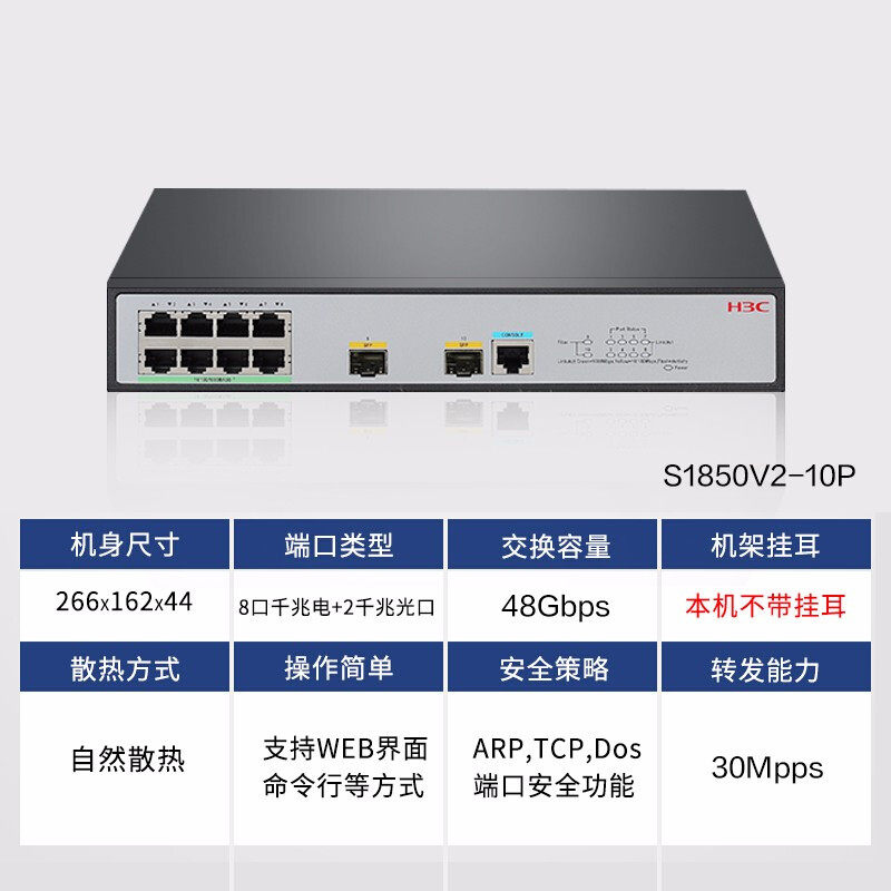 H3C Hua San SMB-S1850V2-10P 8 Gigabyte switch second-layer access switchweb smart web tubeZoom