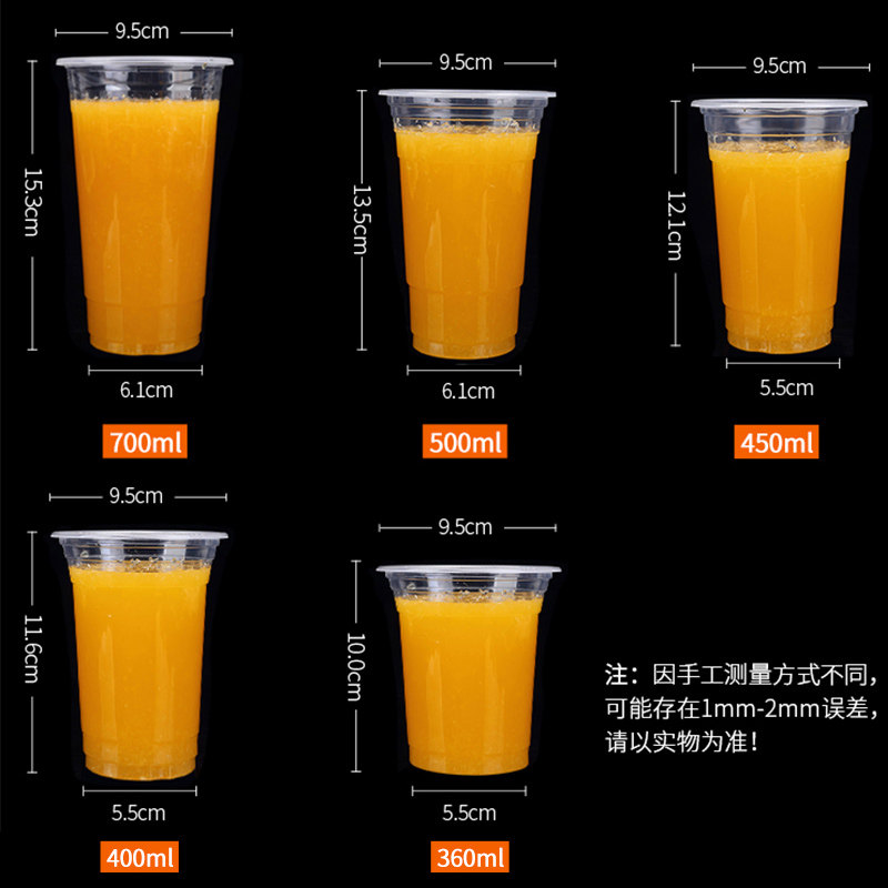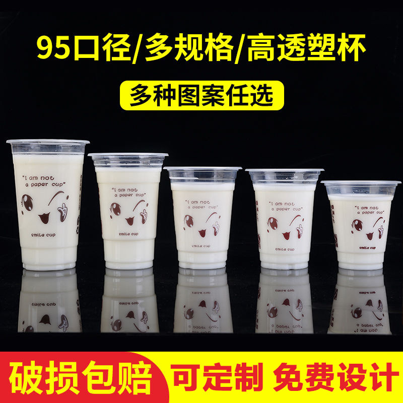 95 Caliber Milk Tea Cup Disposable Cover Plastic Soy Milk Cup 500ml Commercial Drink Cup 1000pcs