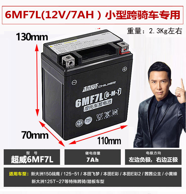 Superweigh 125 cross-motorcycle pedal battery 12v7AH9AH free maintenance dry battery beams