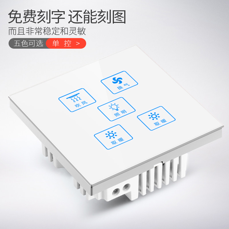 Galiton Type 86 Touch Switch Box Five Open Single Control Smart Bath Touch Control Switch Cleaning