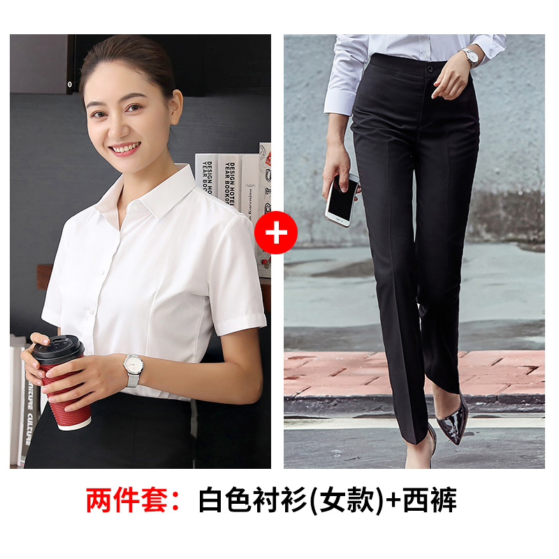 Workwear Men's and Women's Blouse Professional Dress Short Sleeved White Shirt Set Sales Workwear Custom Embroidery LOGO