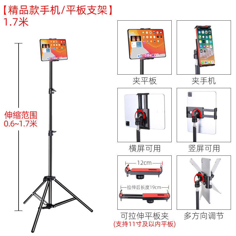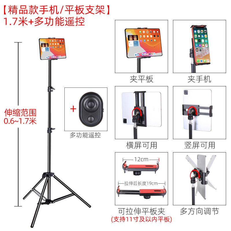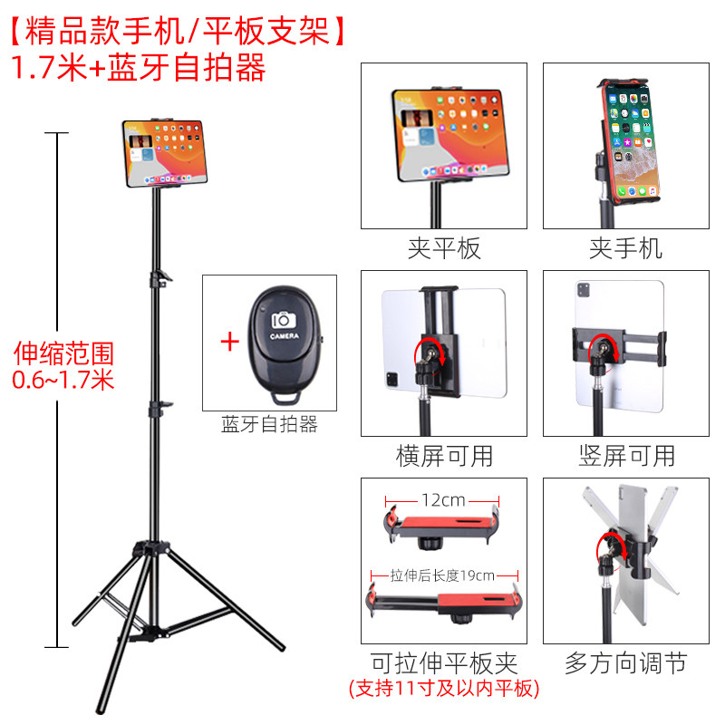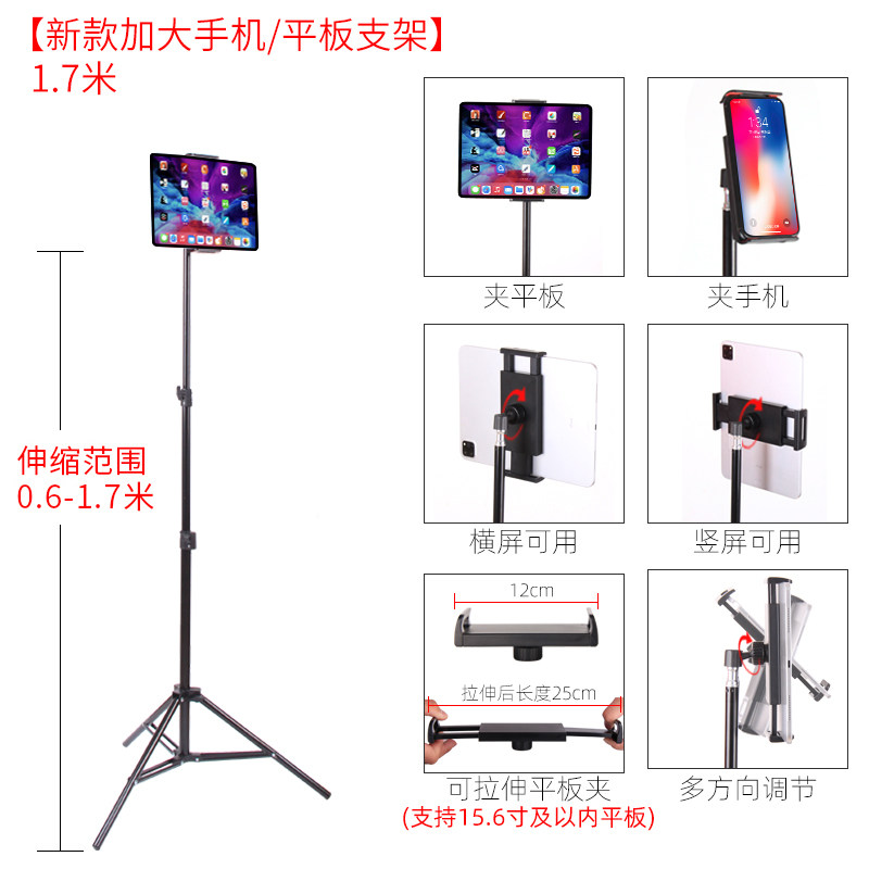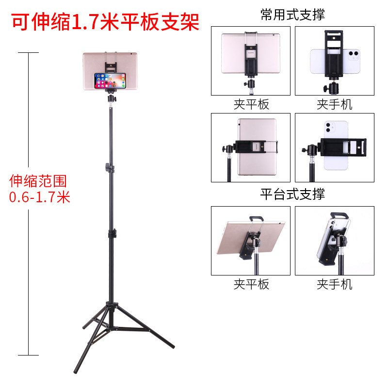Mobile phone lazy stent ipad tablet general three-legged support stent mini6 household land-based multi-functional vibration live video interview self-made adjustable telescopic folding frame