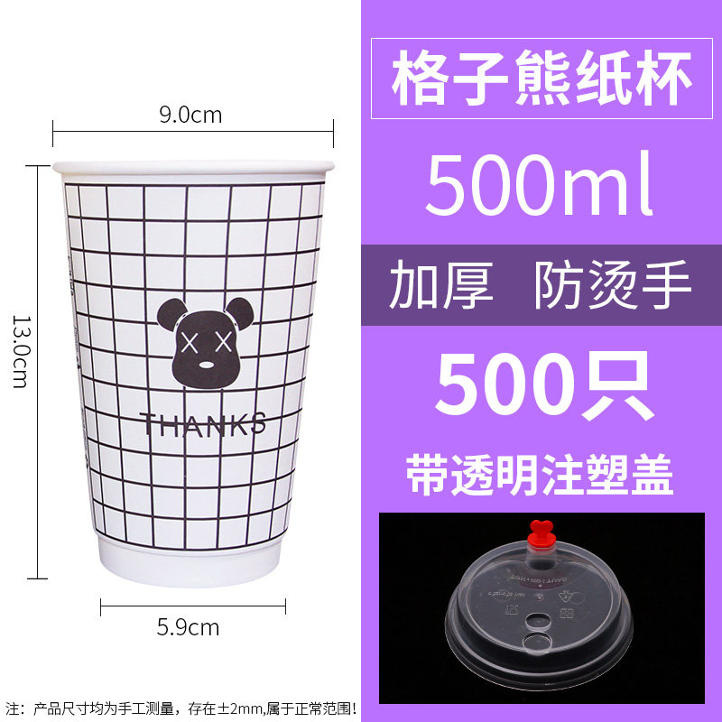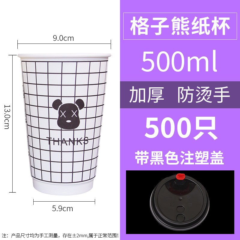 One-time coffee cup with high-end commercial milk tea and paper cups packed with hot drink cups 500 double hollow cupsZoom