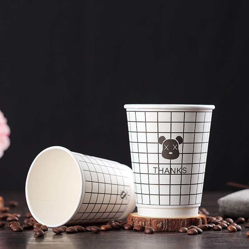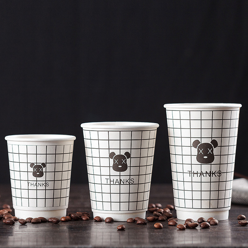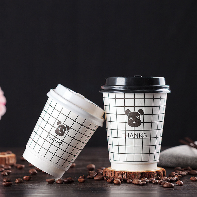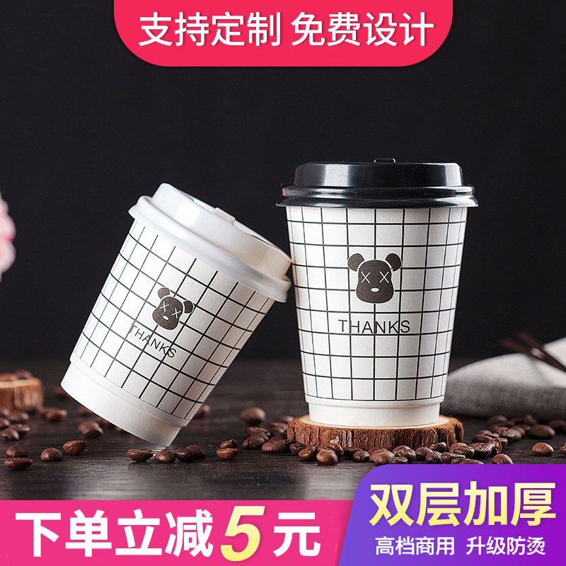 One-time coffee cup with high-end commercial milk tea and paper cups packed with hot drink cups 500 double hollow cups