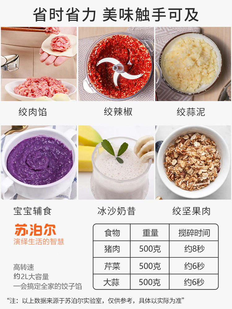 Subor's meat grinder home uses fully automatic multifunction electric small mixer cooking machine to break the minced meat filler dumplingsSubor's meat grinder home uses fully automatic multifunction electric small mixer cooking machine to break the minced meat filler dumplingsProvide Subor's meat grinder home uses fully automatic multifunction electric small mixer cooking machine to break the minced meat filler dumplings by 苏泊尔德盛合专卖店 at chinahao.com. Product #: 583628282250121.49In stock