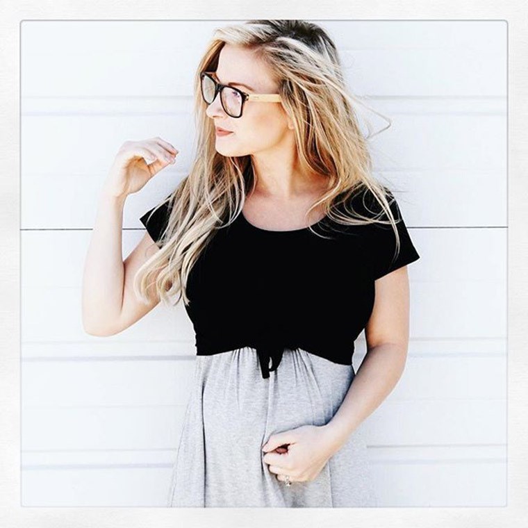 Hot summer short-sleeved color matching pregnant women dress
