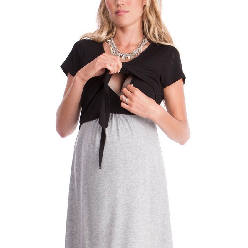 Hot summer short-sleeved color matching pregnant women dressZoom