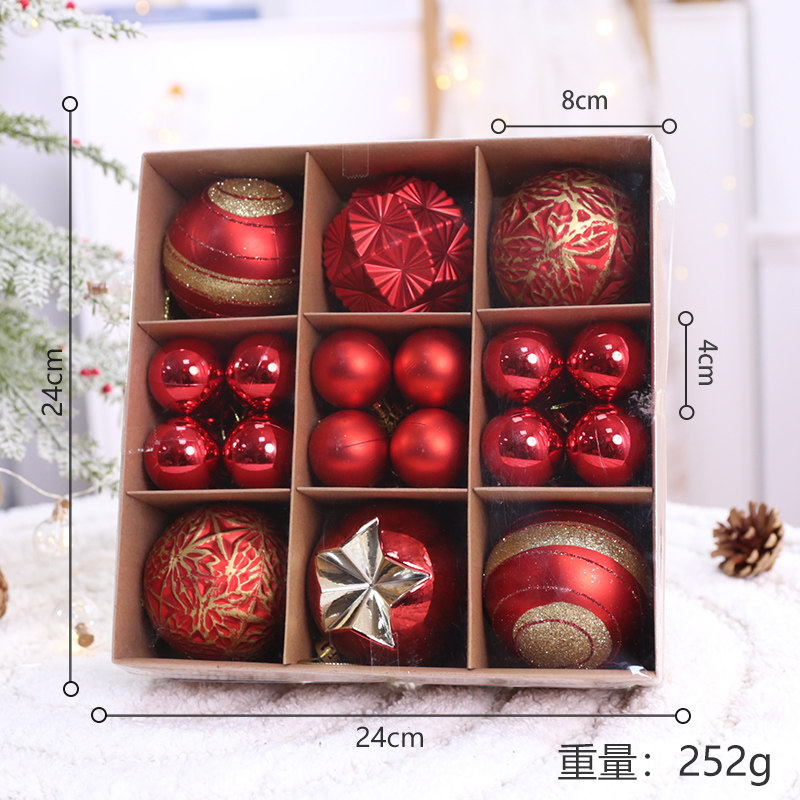 Color classificationRed and white ball 7cm Red and white ball 9cm Red and white bag 6cm Gray white ball 7cm Gray white ball 9cm Gray gift bag 6cm 8cm 4cm golden suit 30