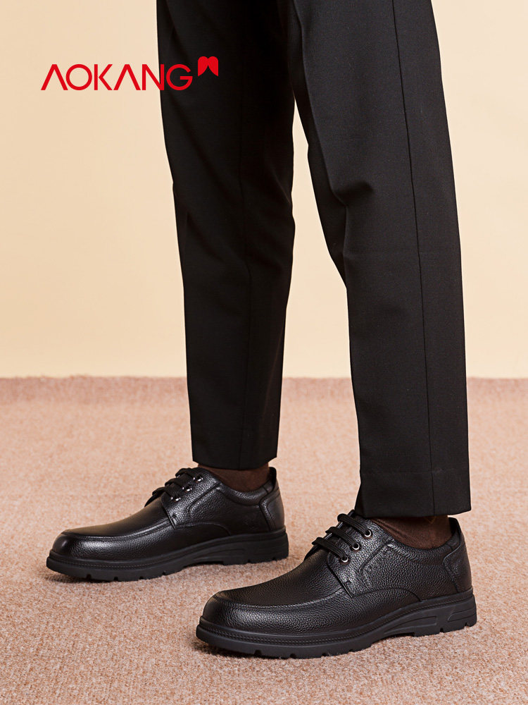 Okang men's shoes autumn winter new business formal leather shoes lace up low top Derby shoes comfortable soft sole work shoes men