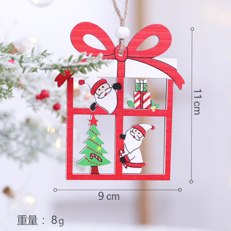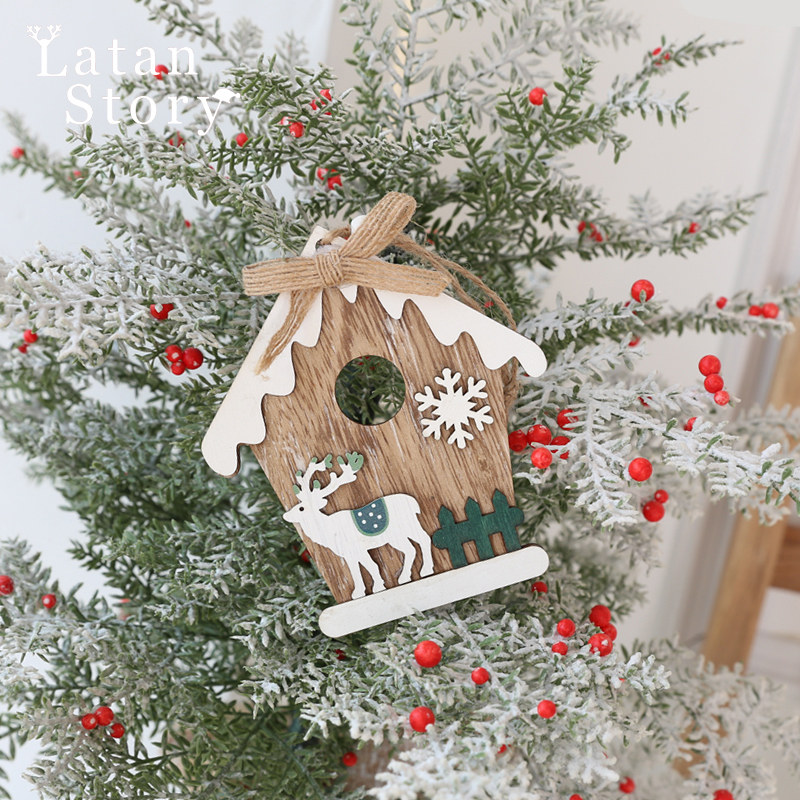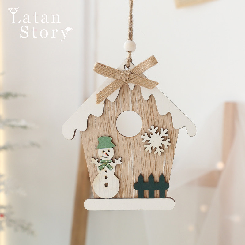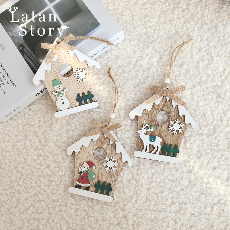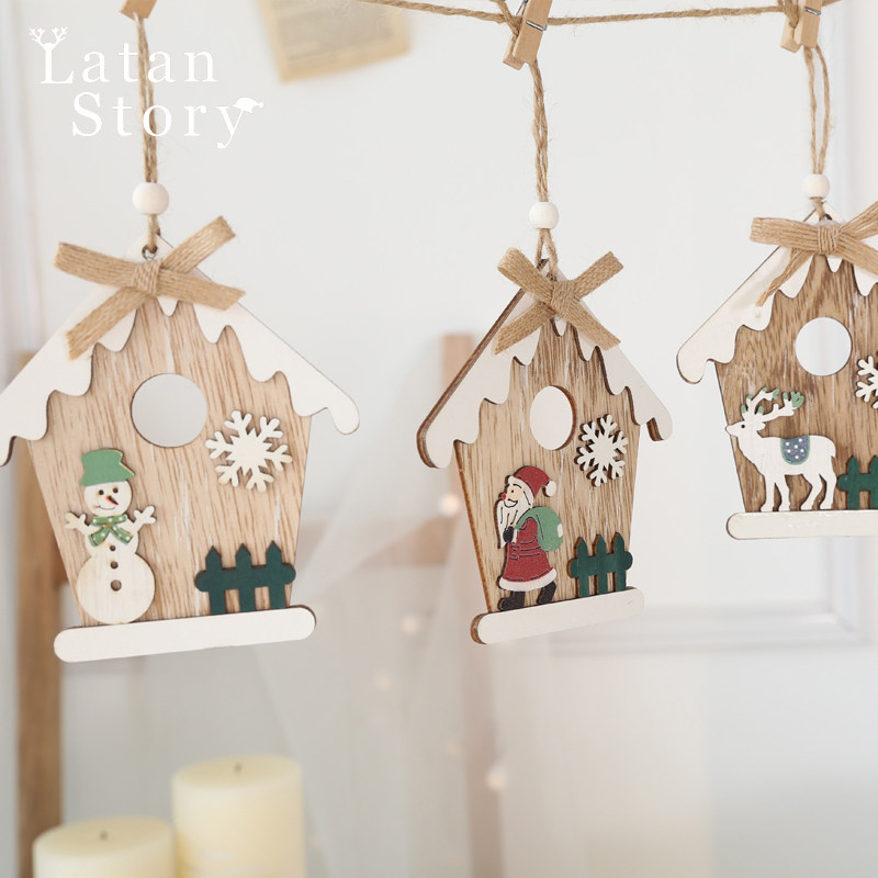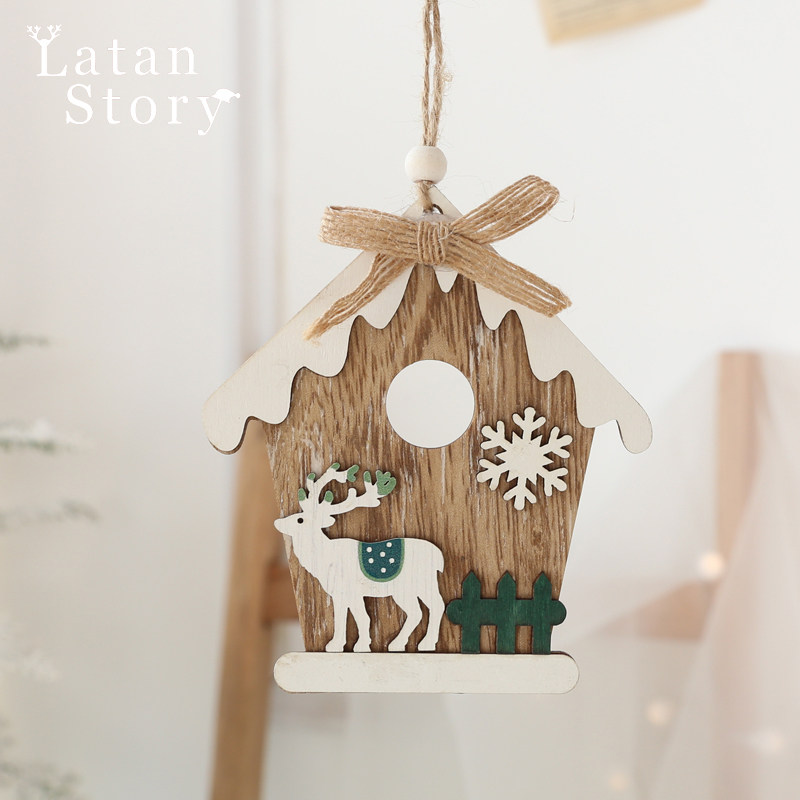 Christmas decorative daily necessities accessories, wooden house small house hanging parts, wood art wall decoration scene decoration home