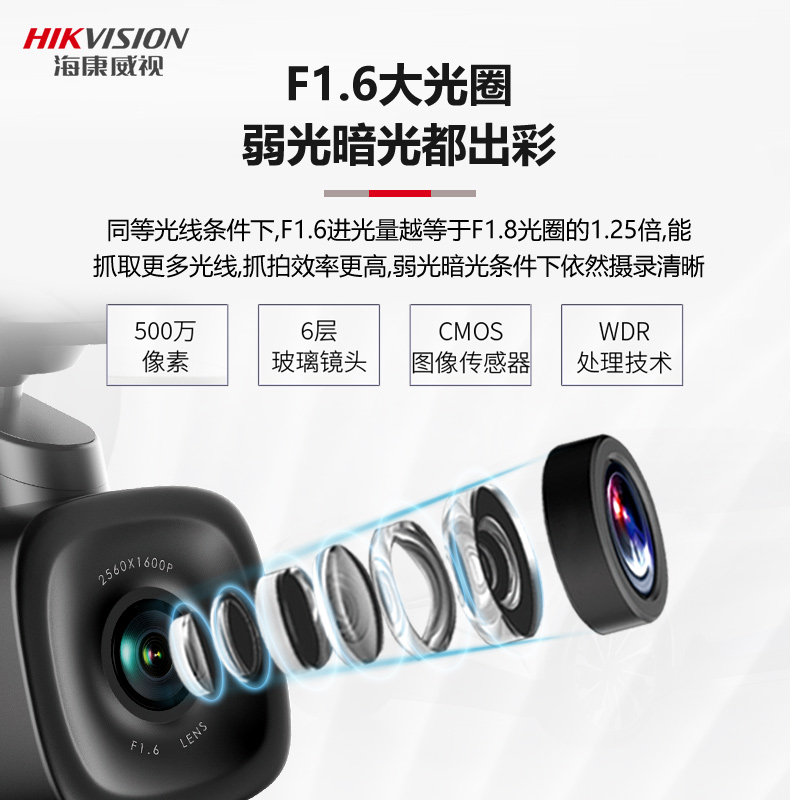Hikvision F6S driving recorder HD night vision car installation-free tracing panoramic parking remote monitoringZoom