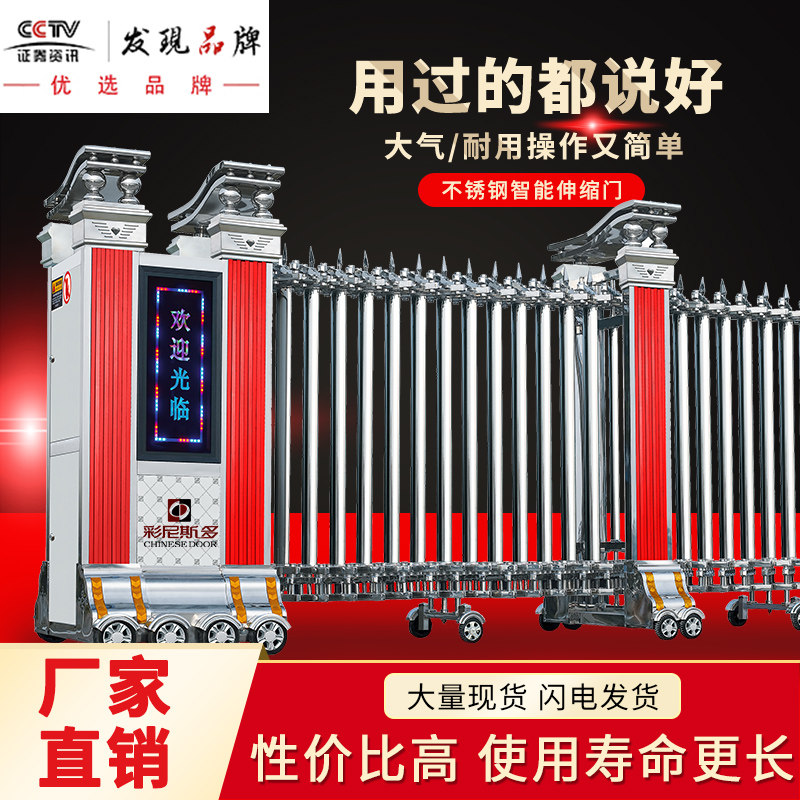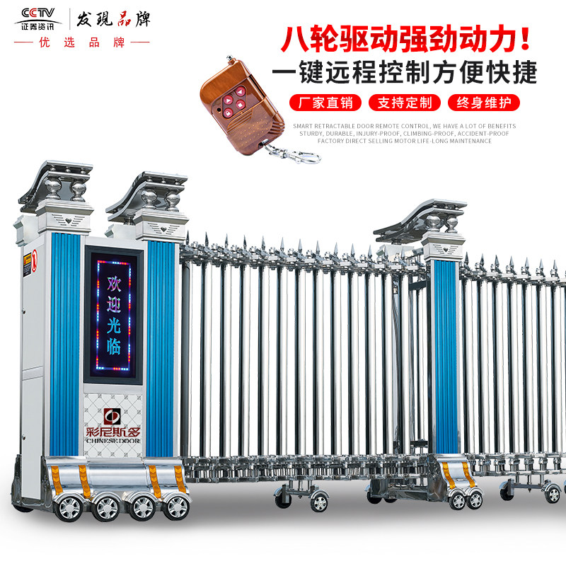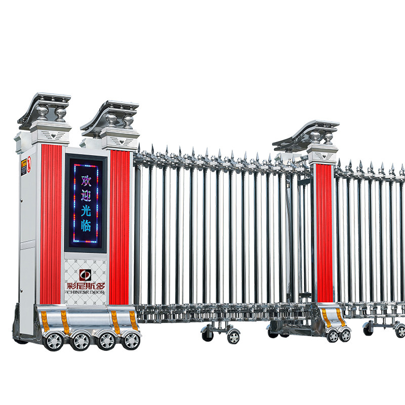 Stainless steel stretching gate school factory remote control automatic aluminum alloy stretching gate tugging door electric gate