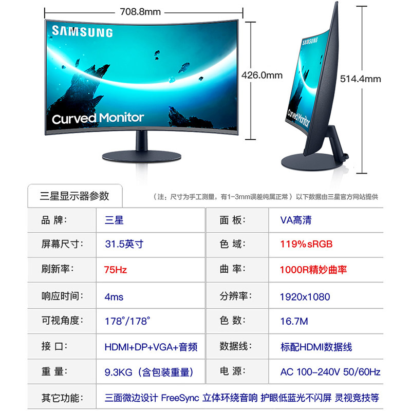 Samsung monitor 32 inches 1000R super curved surface C32T550FDC computer borderless desktop high-definition liquid crystal screen built-in audio video game conquest laptop 27 screen 31Samsung monitor 32 inches 1000R super curved surface C32T550FDC computer borderless desktop high-definition liquid crystal screen built-in audio video game conquest laptop 27 screen 31Provide Samsung monitor 32 inches 1000R super curved surface C32T550FDC computer borderless desktop high-definition liquid crystal screen built-in audio video game conquest laptop 27 screen 31 by 普天迅驰数码专营店 at chinahao.com. Product #: 616739668536946.49In stock