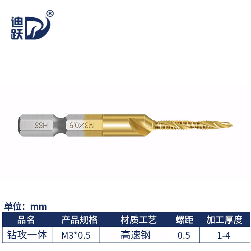 Diyue Composite Thread Cone Drill Bit Drill Attack Integrated Screw Tapping Drill Hole Tapping Three-in-one Belt Self-tapping Tooth Divine Tool Set