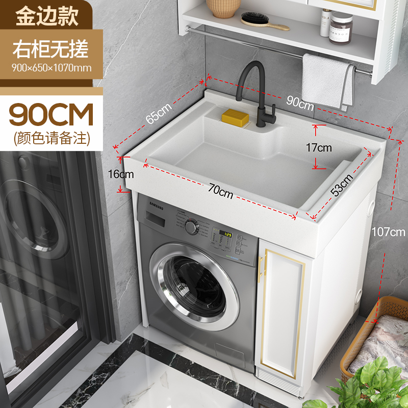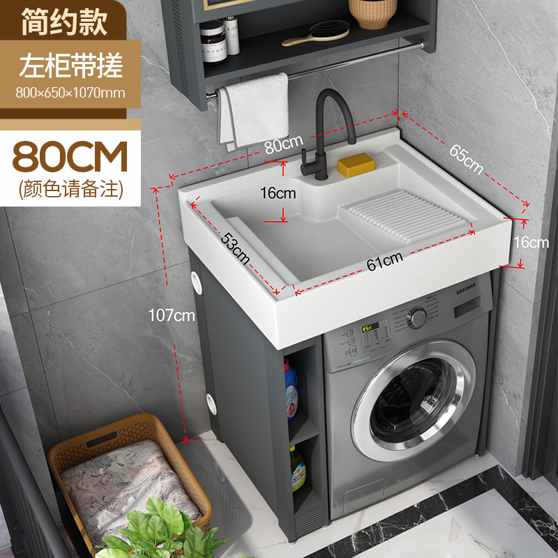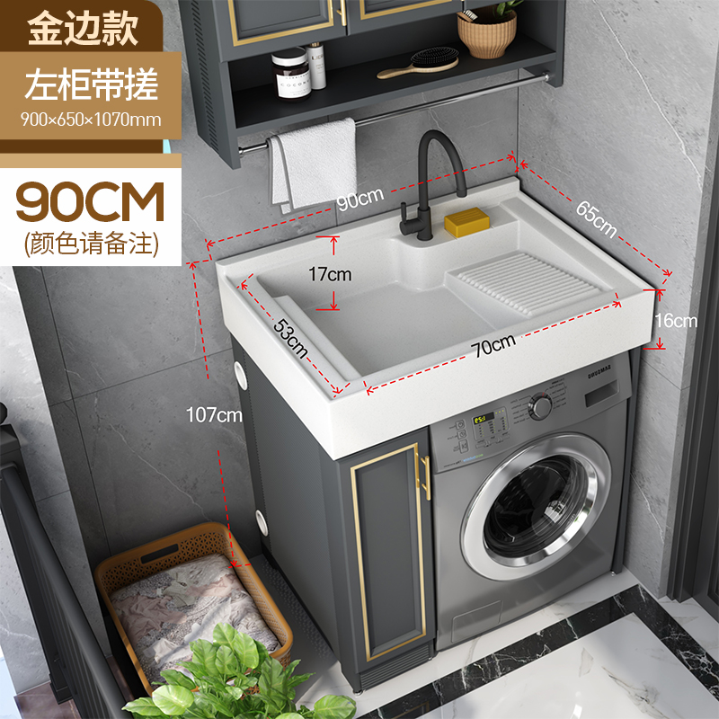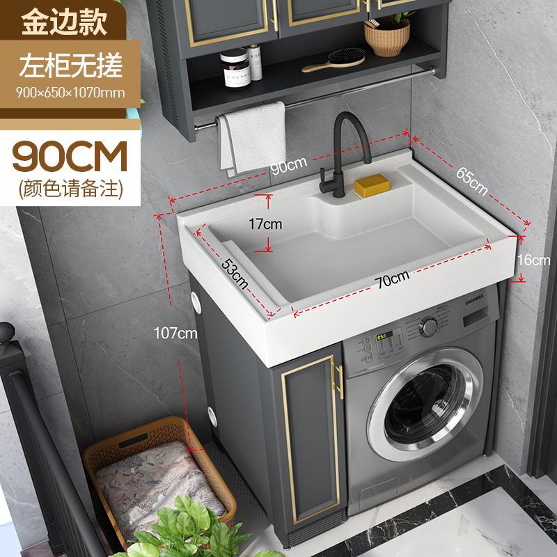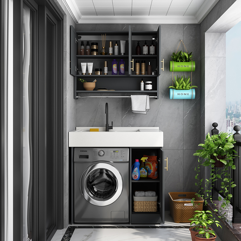 Space Aluminum balcony small-scale washing machine cabinet laundry cabinet laundry pool bathroom cabinet combined roller wash basinZoom